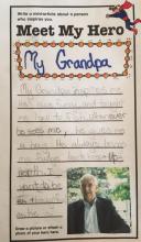 As we went to pay our respects at the funeral home, Jen became very excited to share with us a "God thing" that had occurred the previous day. She explained that her grandmother had asked each grandchild to share a few personal reflections regarding their grandfather during the funeral service. As Jen was considering what to say, she remembered that she had written about him eight years ago during a 5th grade "My Hero" assignment for Miss Toman. She knew her mom had saved that poster, so she went through the basement storage closet determined to locate it. During her search, she lifted the lid of an unusual box, and her heart soared with joy as she saw the poster laying on top of the contents. What added even more emotion to this endeavor was discovering that she had written the completion date of September 14, 2009 on the back of the poster and realizing that the Lord took her grandfather to heaven on September 14, 2017.